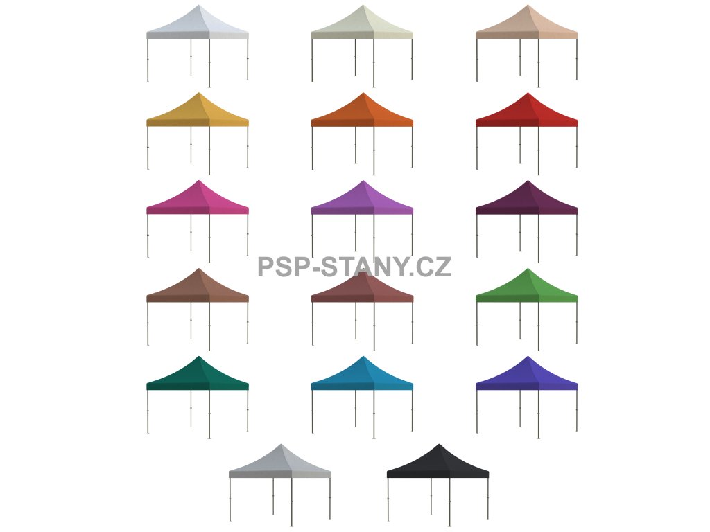 - Základní kompletní opláštění 300g/m2. Střecha + kompletní boční opláštění. 1-2 ks bočních plachet dle rozměru stanu jsou s vyhrnovacími dveřmi. Zbylé boční plachty jsou plné.